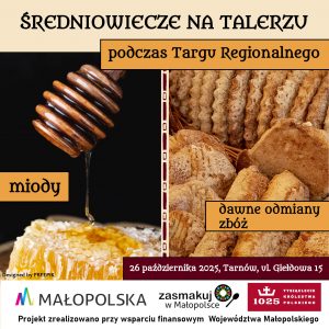Zadanie jest realizowane przy wsparciu finansowym Województwa Małopolskiego w ramach Otwartego konkursu ofert na realizację zadań publicznych Województwa Małopolskiego w obszarze kultury, sztuki, ochrony dóbr kultury i dziedzictwa narodowego pn. „Zasmakuj w Małopolsce” w roku 2025.